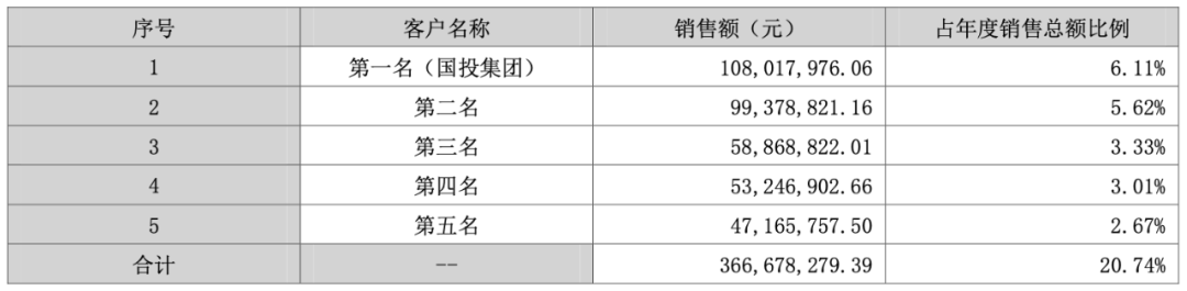 国投集团为其第一大客户,为其贡献 1.08 亿。