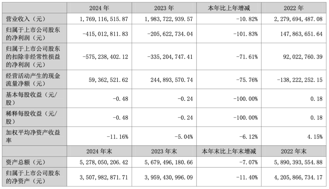 国投智能(原美亚柏科)2024 年营收 17.69 亿(2023 年 19.84 亿);亏损 4.15 亿(2023 年 2.06 亿)。