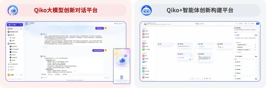 在人工智能领域,推出国内率先通过国家网信办备案的“天擎”公共安全大模型,并基于“天擎”研发推出了自主可控、多端适用的大模型对话平台 Qiko 及大模型智能体构建平台 Qiko+,提供跨模态、跨语言、跨领域知识的智能对话能力,以及深度结合业务场景的智能体编排构建能力。
