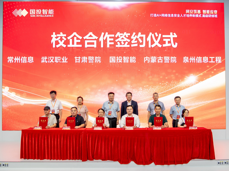 会议同期举行校企合作签约仪式,国投智能股份与甘肃警察学院、内蒙古警察学院、武汉职业技术大学、常州信息职业技术学院、泉州信息工程学院等院校以及昆明市智慧城市建设投资有限公司签署战略合作协议,联合推动科研成果转化与人才培养。