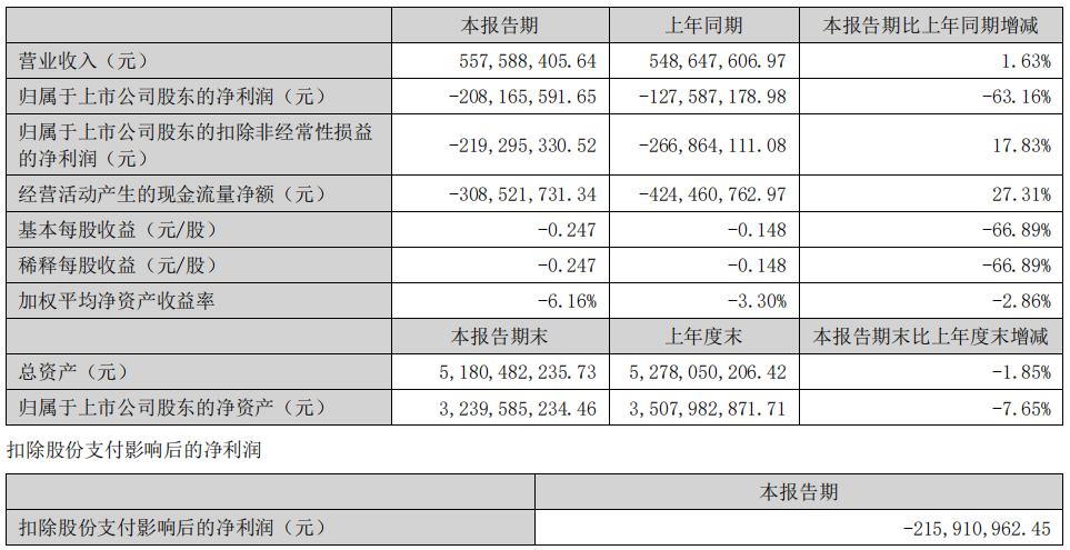 2025 年上半年营收 5.58 亿,同比增加 1.63%;亏损 2.08 亿。