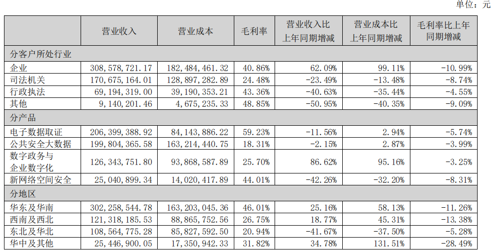 电子数据取证营收 2.06 亿,同比减少 11.56%。