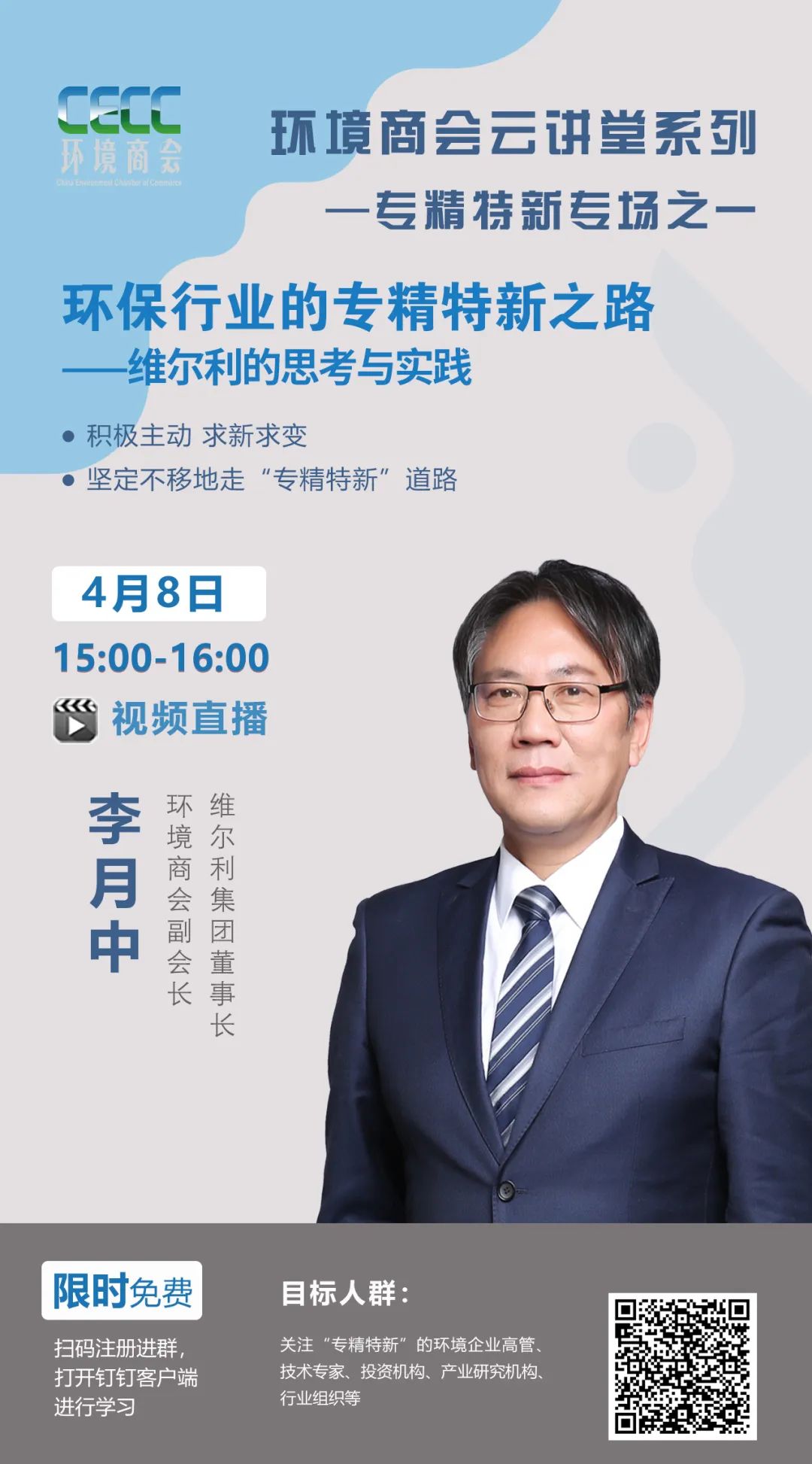 2022年4月8日,首期“专精特新”专场,邀请到环境商会副会长、维尔利集团董事长李月中先生。
