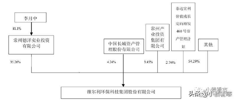 从股权结构看,维尔利控股股东为常州德泽实业投资有限公司(以下简称“常州德泽”),持股比例为35.26%,李月中持有常州德泽81.1%股份,为公司实际控制人。