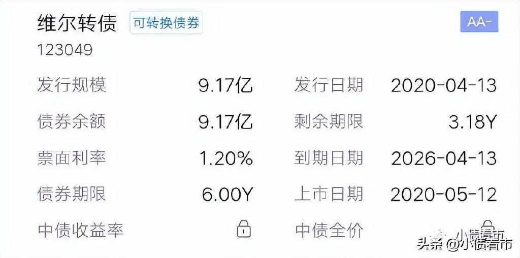 《小债看市》统计,目前维尔利仅存续“维尔转债”,该可转债发行于2020年,发行规模9.17亿元,期限6年。