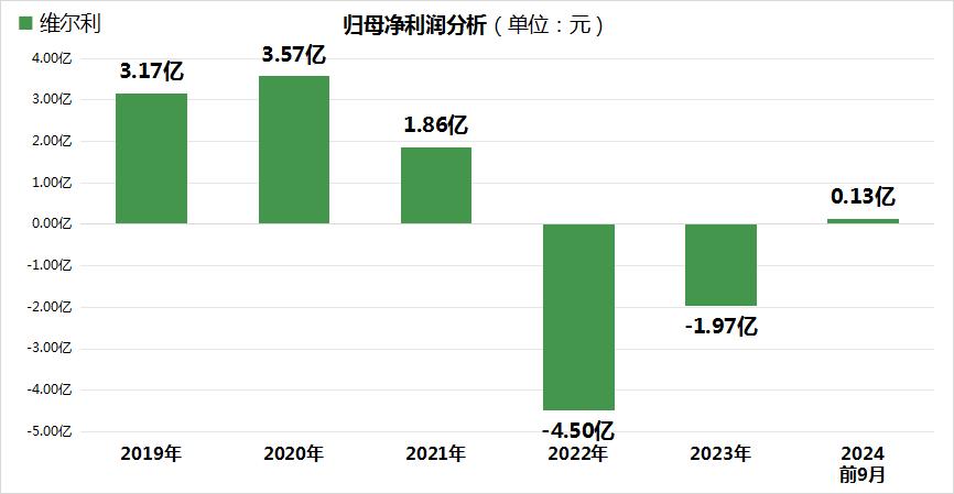 截至2024年前三季,维尔利仅实现微薄盈利0.13亿元。