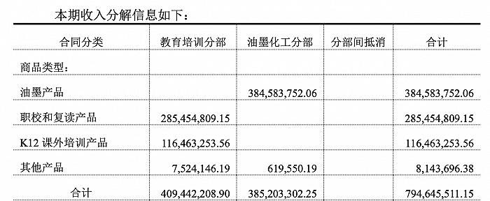 2022年,该公司职业教育及K12培训营收占比累计达50.4%,其中K12课外培训年收入合计1.16亿元,同比下降36.54%,被占比达48.3%的油墨业务“步步紧逼”,教育业务能否稳住“头把交椅”变得岌岌可危。