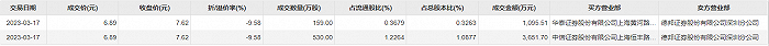 佳士科技3月17日大宗交易成交689万股,成交额4747.21万元,占当日总成交额的73.37%,成交价6.89元,较市场收盘价7.62元折价9.58%。