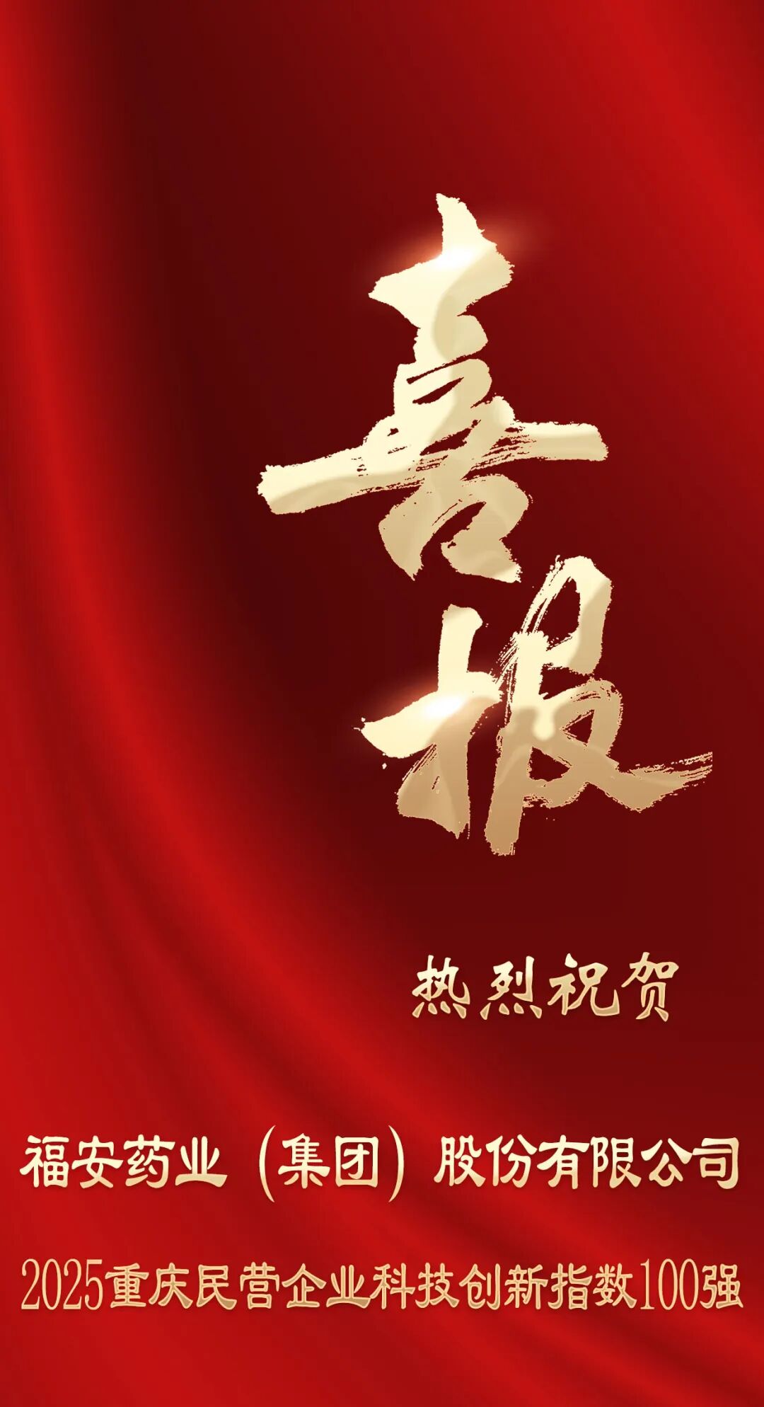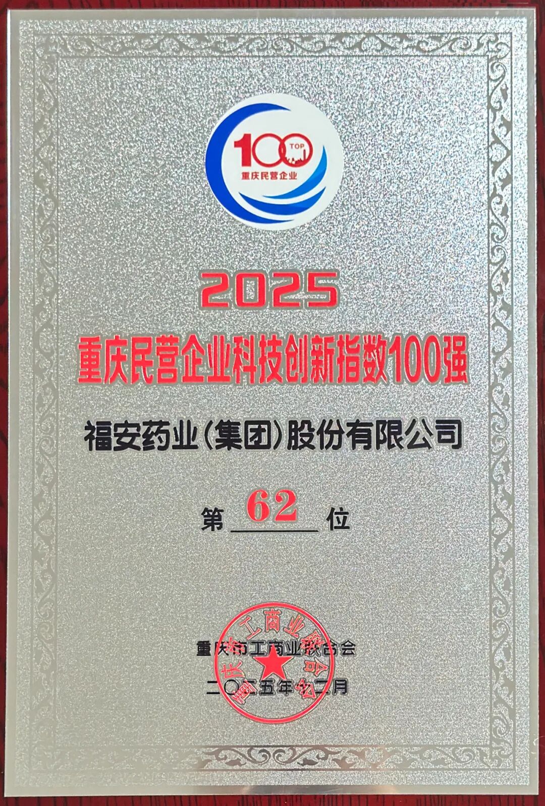 热烈祝贺:福安药业集团荣获2025重庆民营企业科技创新指数100强