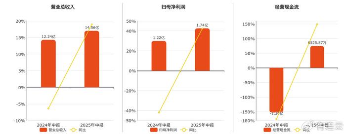 公司营业总收入为14.56亿元。归母净利润为1.74亿元。经营活动现金净流入为6525.87万元。