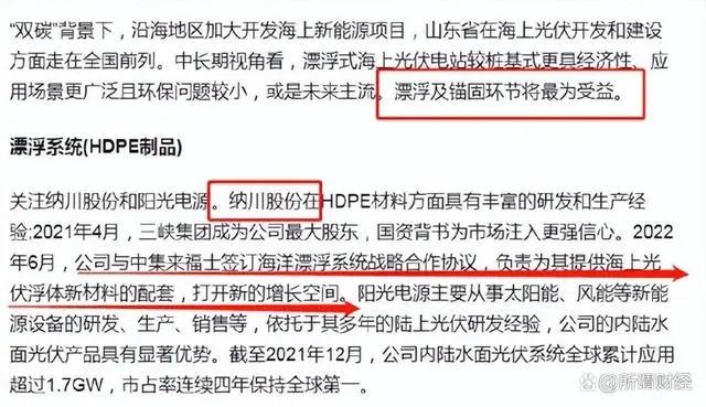 3、纳川股份——三峡大股东根正苗红,HDPE是浮体材料最佳路线,30亿袖珍市值作为新能源新技术路线受益股,底部迎来重要炒作良机!