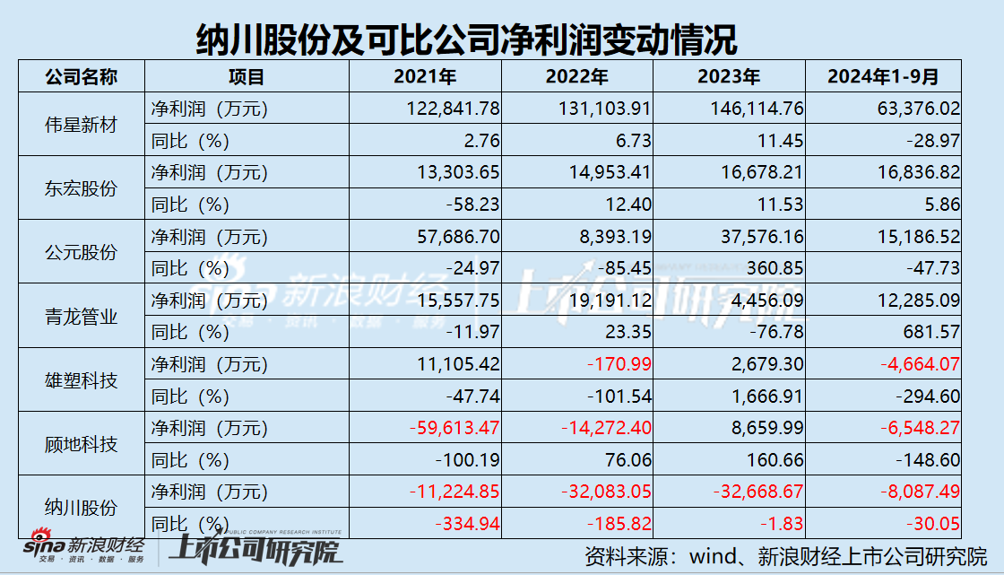 2021年至今年前三季度,纳川股份的营业收入分别为6.78亿元、5.07亿元、3.96亿元和1.31亿元,分别同比下降24.18%、25.29%、21.86%、56.17%,呈现快速下降趋势;扣非后归母净亏损1.1亿元、2.98亿元、3.1亿元和7142.02万元,分别同比变动-439.69%、-170.73%、-4.07%和-16.45%,三年一期累计亏损7.89亿元,截至今年9月末未分配利润为-4.86亿元;毛利率分别为14.48%、4.27%、12.20%和15.17%,净利率分别为-16.55%、-63.31%、-82.49%和-61.83%,盈利能力匮乏。