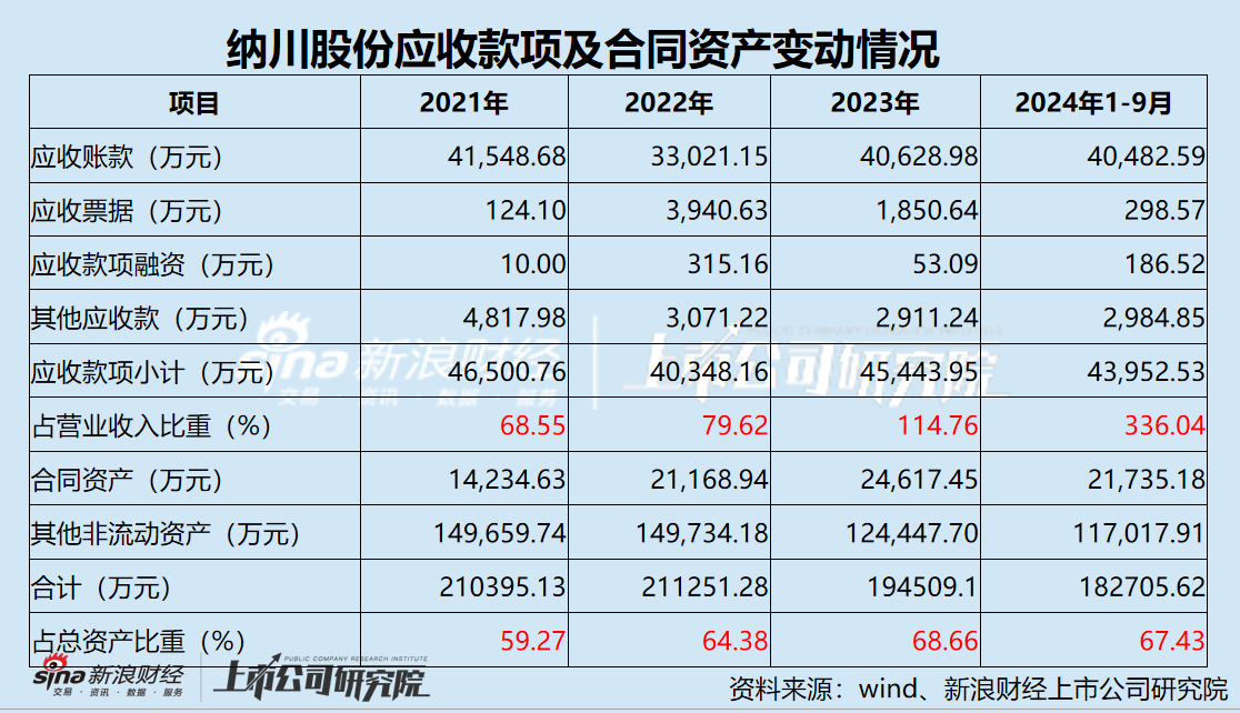 截至今年9月,纳川股份合同资产及其他非流动资产(主要系PPP项目在建工程)合计13.88亿元,占总资产的比例为51.21%。