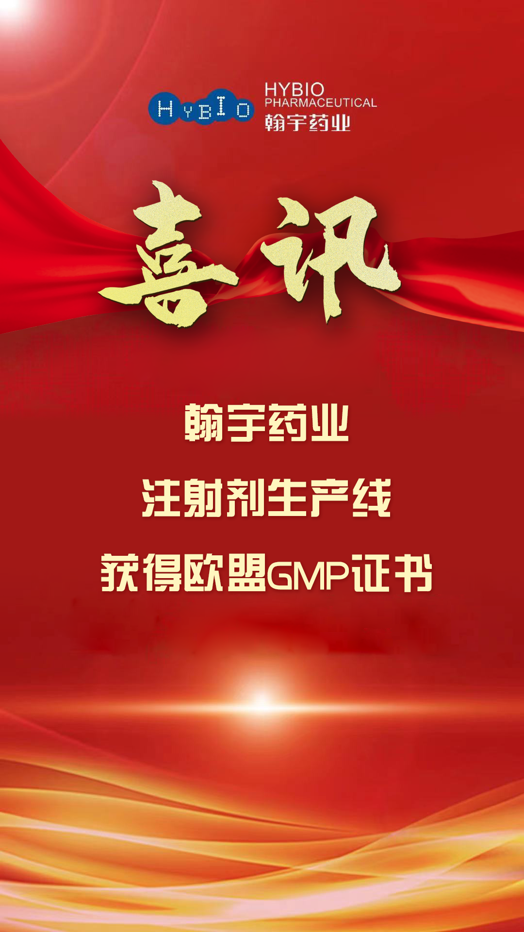 喜讯丨翰宇药业注射剂生产线获得欧盟GMP证书