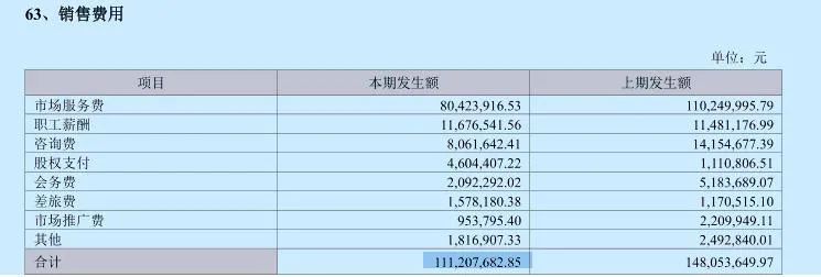 2023上半年,销售费同比下降24.89%至1.11亿元,仍是公司费用中的最大支出。