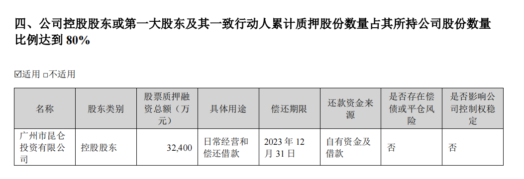 2023年半年报显示:公司控股股东或第一大股东及其一致行动人累计质押股份数量占其所持公司股份数量比例达到80%。