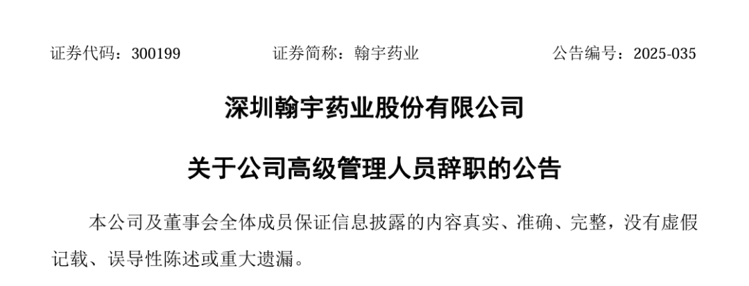 8月15日晚间,翰宇药业公告,因个人原因,张宝乐先生不再担任副总裁职务。