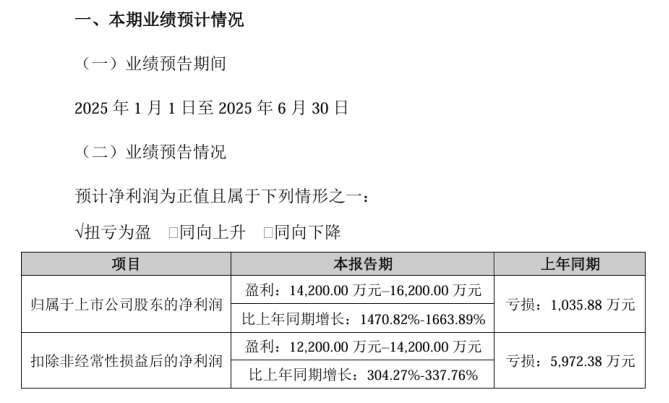 不久前,翰宇药业发布业绩预告,预计公司上半年实现归属净利润1.42亿元至1.62亿元,同比大增1470.82%至1663.89%;扣非净利润1.22亿元至1.42亿元,同比增长304.27%至337.76%,由此也打赢了一场“扭亏为盈”翻身仗。2025年一季度,翰宇药业实现收入3.10亿元,归母净利润6987万元。