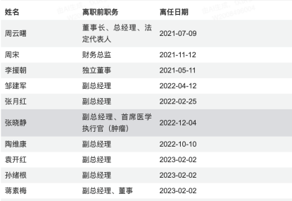 在医药圈,高管跳槽并非新鲜事。但是近年来恒瑞医药的管理层“出走”确实较为频繁。2021年7月,公司原董事长、总经理周云曙离职;2021年11月,原财务总监周宋离职。2022年2月,副总经理张月红离职;2022年4月,副总经理邹建军离职;同年10月副总经理陶维康离职;2022年12月新任的副总经理兼首席医学执行官(肿瘤)张晓静,在上岗仅仅八个月后提出辞呈。今年以来,则有沈亚平、副总经理陶维康离职职。