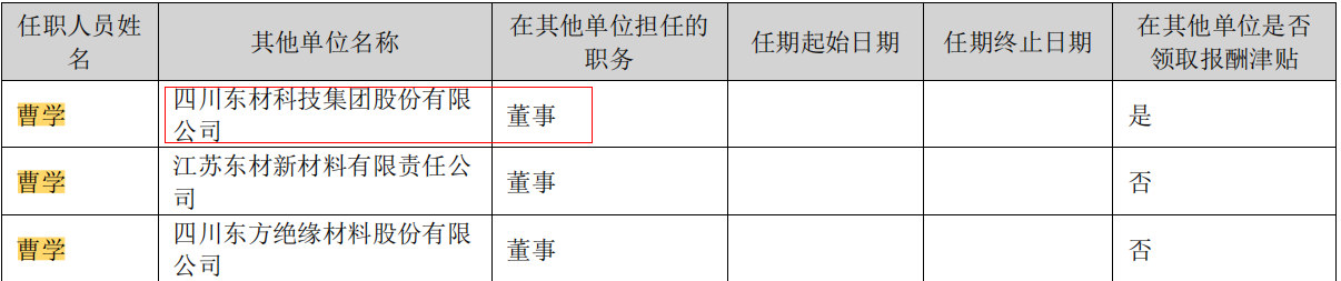 此外,高盟新材2022年年度报告显示,曹学:汉族,出生于1975年5月,中国国籍,博士,正高级经济师,中共党员。现任公司董事长。绵阳市第七届、第八届人大代表,四川省优秀企业家,郑州大学管理科学与工程学科发展战略咨询委员会委员。2008年6月毕业于武汉理工大学,获管理学博士学位;2010年7月从武汉理工大学管理科学与工程博士后流动站博士后出站。1994年7月毕业分配至四川东方绝缘材料厂(现四川东材科技集团股份有限公司),历任车间技术员、质检处质管员、销售分公司会计、销售分公司经理、华南区域销售经理、总经理助理、副总经理、总经理,现任四川东材科技集团股份有限公司董事。