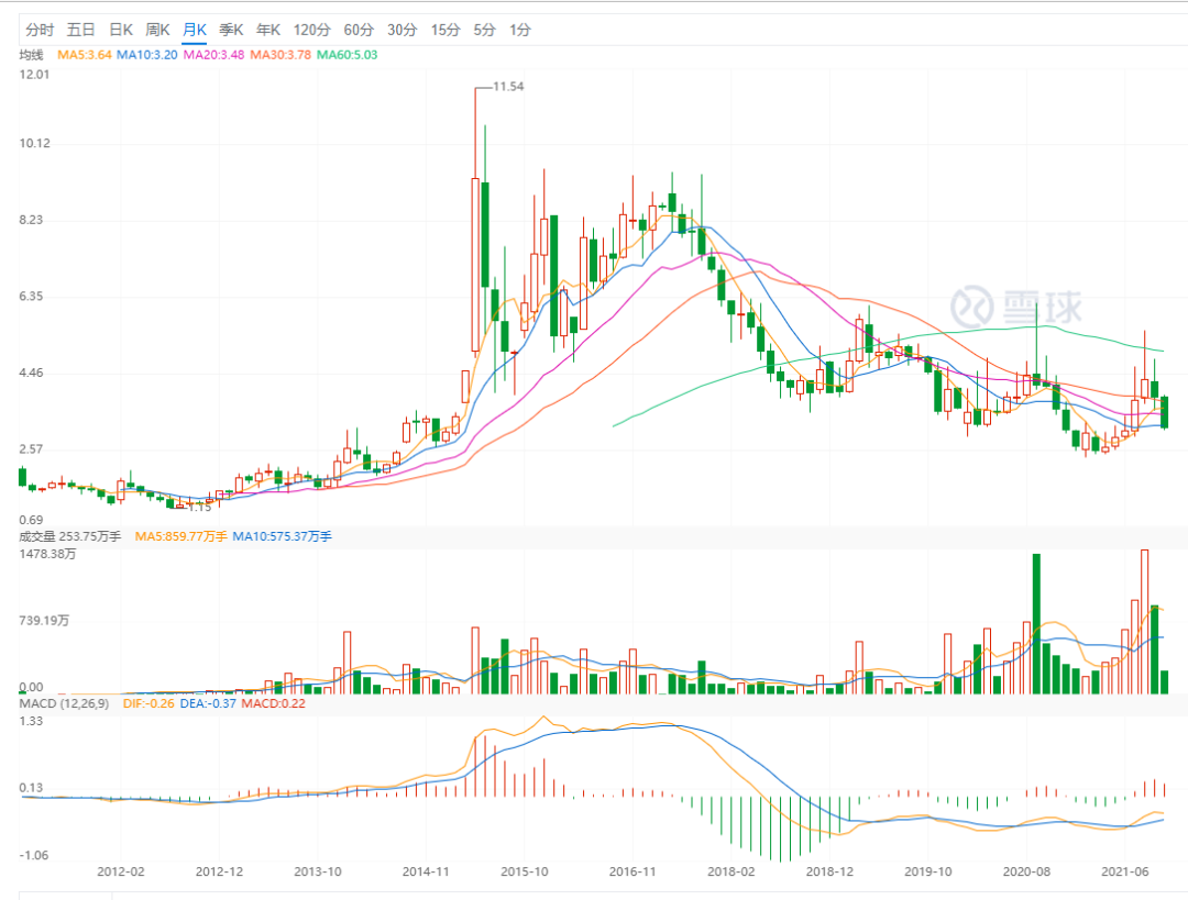二级市场上,海伦哲曾在2015年创11.5元历史天价,市值一度达120亿元,此后数年震荡下跌,今年2月下探2.41元的近六年多股价新低。10月27日,海伦哲收报3.13元,最新市值32.58亿元,不到历史峰值的28%。