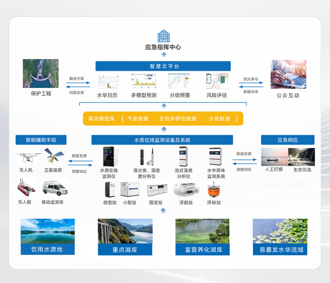 为满足湖库、河流等水华预警监测和安全保障应用需求,高效助力水污染攻坚,聚光科技推出水华监测预警防控综合解决方案,通过三大体系(监测预警、应急防控、预警平台)实现实时监测水华状态、精准预警水华趋势和高效防控水华暴发,最大程度减少水华暴发危害,促进水质达标和水质安全。