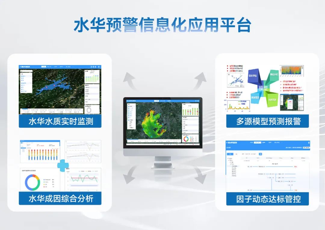 构建水华“监测-分析-呈现-预警-建议”一体化智能应用平台,实现水质水华实时监测、多源模型预测报警、水华成因综合分析、因子动态达标管控等目标,核心功能包括: