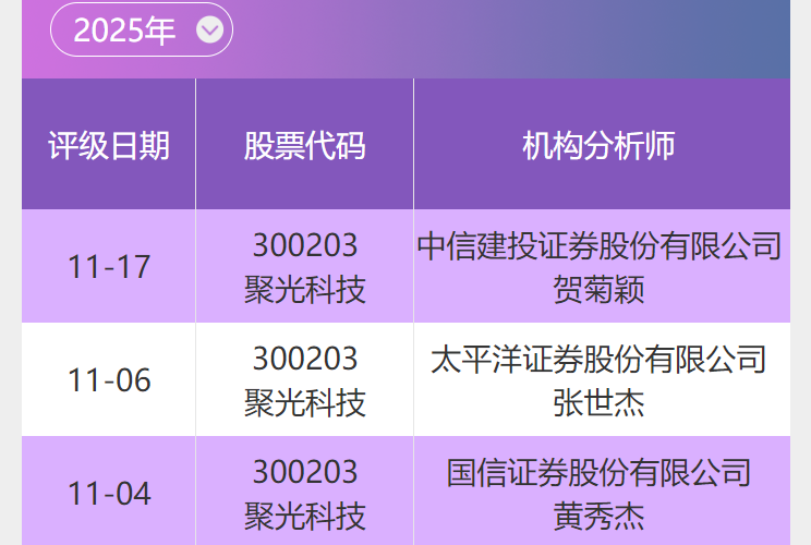 聚光科技评级纵览(近3次)