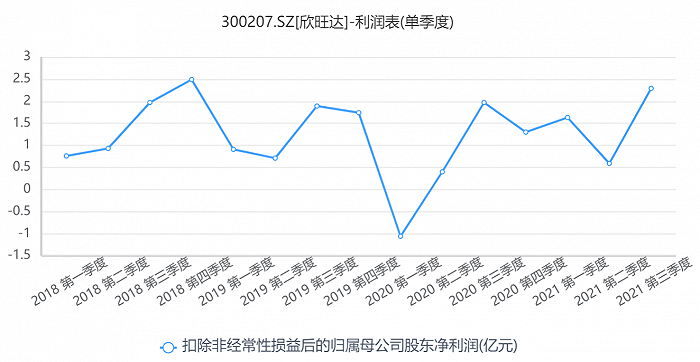 从扣非净利润这一指标来看,欣旺达第三季度扣除非经常性损益后的净利润为2.29亿元,而一季度、二季度的扣非净利润分别为1.63亿元、0.69亿元,公司主营业务盈利能力环比大幅提升。