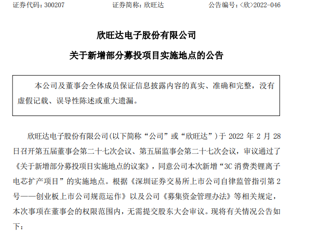 直至如今,在欣旺达的词条搜索中,还依旧保留着“欣旺达是一家国内领先的锂电池生产企业,主要向手机、笔记本电脑以及扫地机器人等智能硬件类产品提供消费类锂电池。”的介绍。