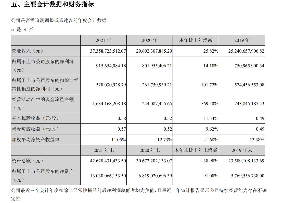 欣旺达2021年主要财务数据图片来源:年报截图