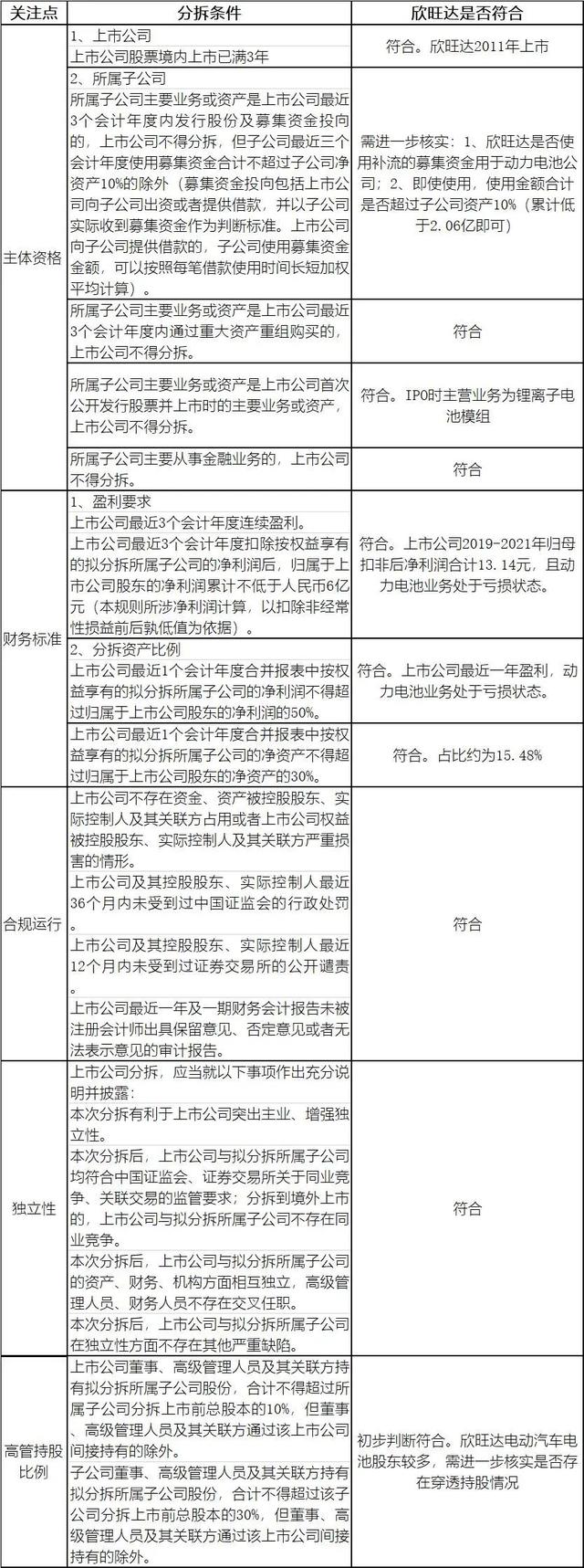 结论:除募集资金使用需进一步核实外,欣旺达分拆欣旺达BEV上市符合《上市公司分拆规则(试行)》其他相关规定。