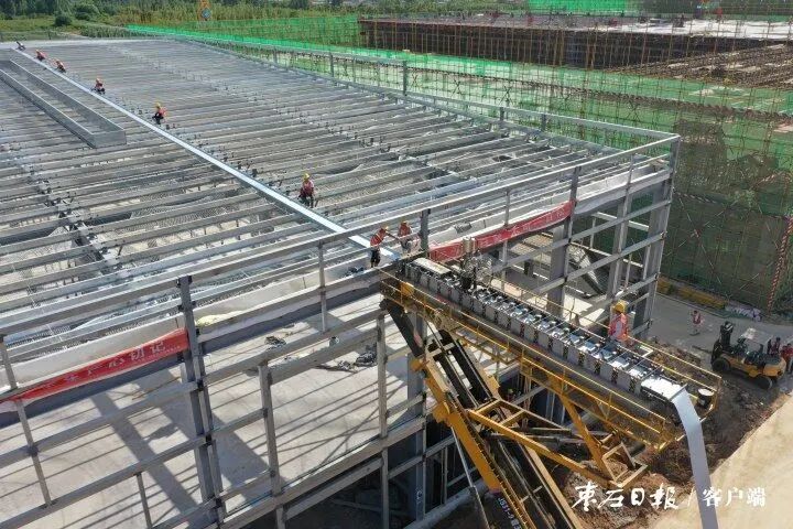 记者在现场看到施工人员正在进行地面和路面的装饰施工,据介绍,9月底将完成所有的土建施工,设备安装将在11月进行。