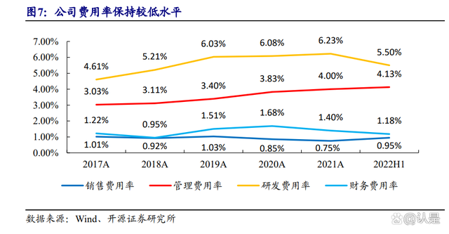 大力投入研发,销售、财务费用率保持较低水平。公司自开始开拓动力电池业务以来大力投入研发,研发费用率不断上升,从 2017 年的 4.61%上升至 2021 年的 6.23%;公司目前主要采用进入客户供应商体系进行直接销售的销售模式,财务费用率也保持良好,销售和财务费用率均维持在 1%左右;公司管理费用率从 2017 年的 3.03%上升至 2022H1 的 4.13%,处于上升态势,但整体仍处于较低区间。