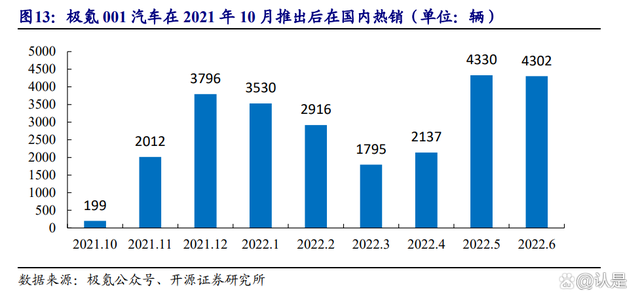 公司产品安全性能优势凸显,供货吉利 PMA 平台切入高端乘用车型。2021 年公司与吉利子公司威睿电动达成合作,为吉利 PMA 平台(包括极氪、smart、VOLVO、几何等品牌)供应电芯产品。其中吉利旗下高端品牌极氪汽车于 2021 年发布了由欣旺达定向开发的极氪 001 电池包针刺试验视频,试验中被刺电芯温度高达 801.4℃也未起火、未爆炸,公司产品安全性能优势凸显,当前已为极氪 001 汽车配套电芯,后者在 21 年 10 月推出后销量迅速上涨,月度交付量已超过 4000 辆,一方面为公司动力电池放量提供支撑,另一方面也为公司提供高端车型的信用背书。