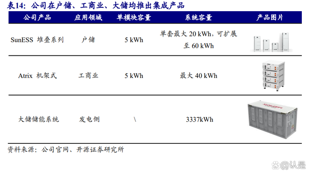 大储及通信储能在南昌一期产能投放后将提升电芯自供比率,户储及便携式有望从集成切入电芯。公司在户储、工商业、大储均推出了集成产品,南昌一期产能投放后有望逐步实现发电侧和通信储能的电芯自供。同时公司的 SunESS 产品采用堆叠模块化设计,叠放即可使用,无需接线,公司已经与头部品牌商达成合作,便携式储能领域也已经为头部品牌商提供批量 OEM 服务,未来有望从集成切入电芯。