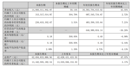 财报显示,2022年第三季度,欣旺达实现营收148.7亿元,同比增长50.14%;归属于上市公司股东的净利润为3.16亿元,同比增长504.79%。2022年前三季度,欣旺达实现营收365.84亿元,同比增长43%;归属于上市公司股东的净利润为6.89亿元,同比增长2.72%。