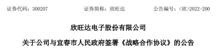 12月7日,欣旺达发布公告宣布,公司与宜春市人民政府签署《战略合作协议》,双方协定在宜春市政府管辖区域内,共同构建从碳酸锂生产、锂电池关键材料到锂电池回收利用的产业链体系。