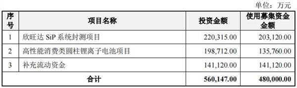其中,“欣旺达SiP系统封测项目”由欣旺达全资子公司浙江欣威电子科技有限公司实施,该项目拟新建电源管理系统SiP系统封装生产线及配套设施。项目达产后将主要形成年产1.1亿只SiP系统封装电源管理系统产能。