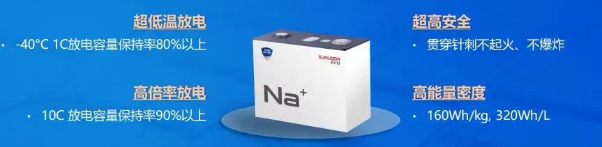 超低温钠离子电池在正极材料、负极材料、电解液三方面取得技术突破,最终形成一个性能优异的电化学储能体系,实现了超低温放电、超高安全性能、高倍率放电、高能量密度的产品目标。