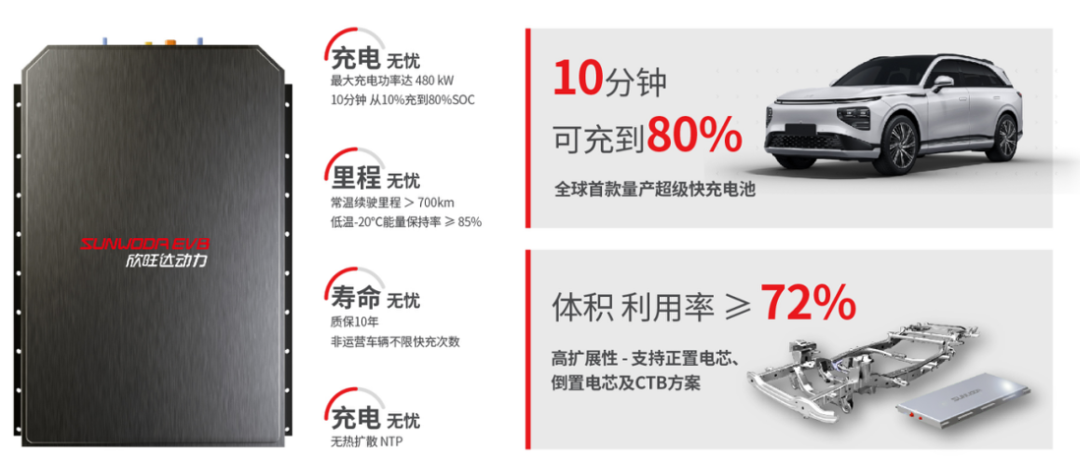 此次车展上,欣旺达动力还重磅展示了全球首款超快充电池——闪充电池。该款动力电池具有超快充、欣安全、抗低温、特耐用等特点,支持电动汽车轻松续航1000公里,10分钟充至80%SOC,让充电像加油一样快,极大地解决了新能源终端用户续航里程焦虑。