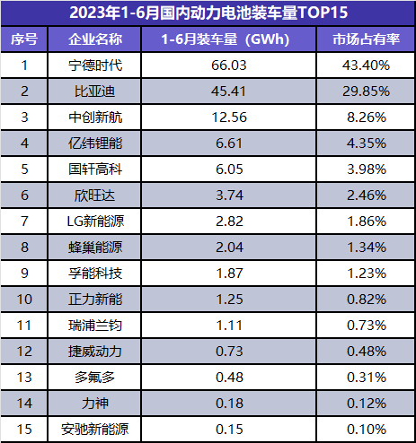 ※图表:2023年1-6月国内动力电池装车量数据及排行