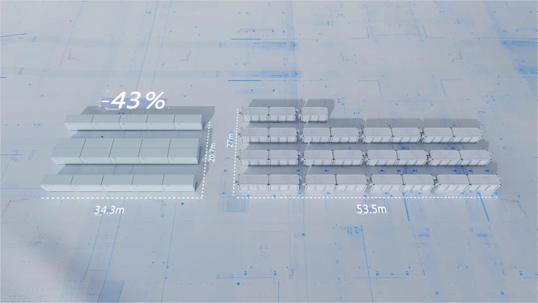 不仅如此,以常规项目容量100MW计算初始投资成本,大容量标准20尺5MWh液冷储能系统与主流3.72MWh产品相比,占地面积节省43%,成本节省26%,大幅度降低储能系统首次购置成本,降本作用凸显。