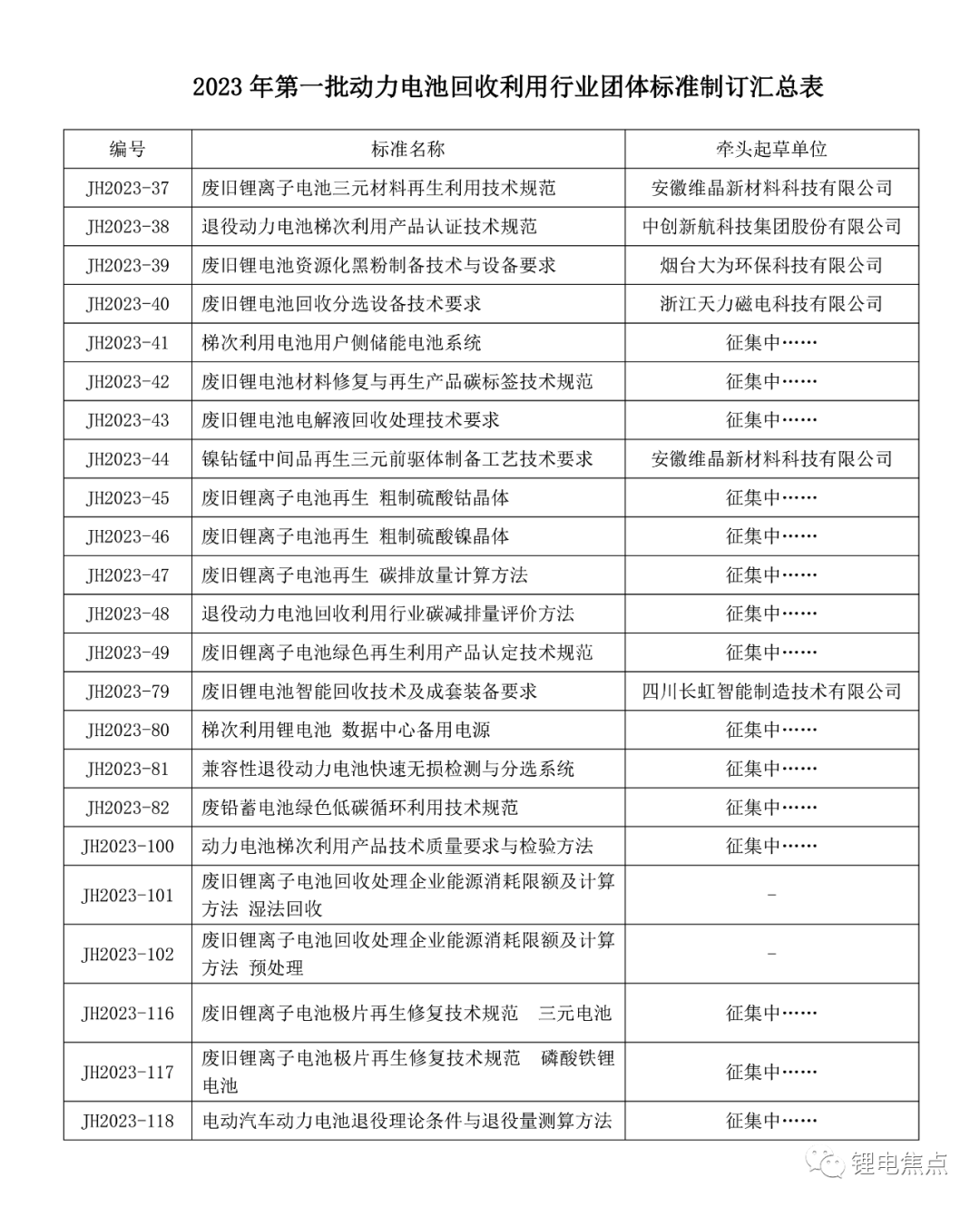 关于征集2023年第一批动力电池回收利用行业团体标准