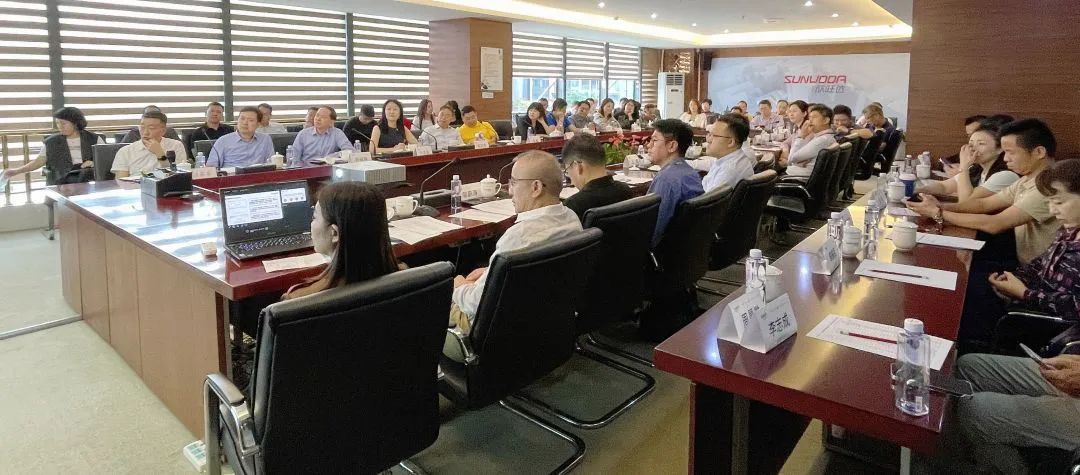 欣旺达董事长王威热情的接待了企业家们,双方在会议室举行座谈。