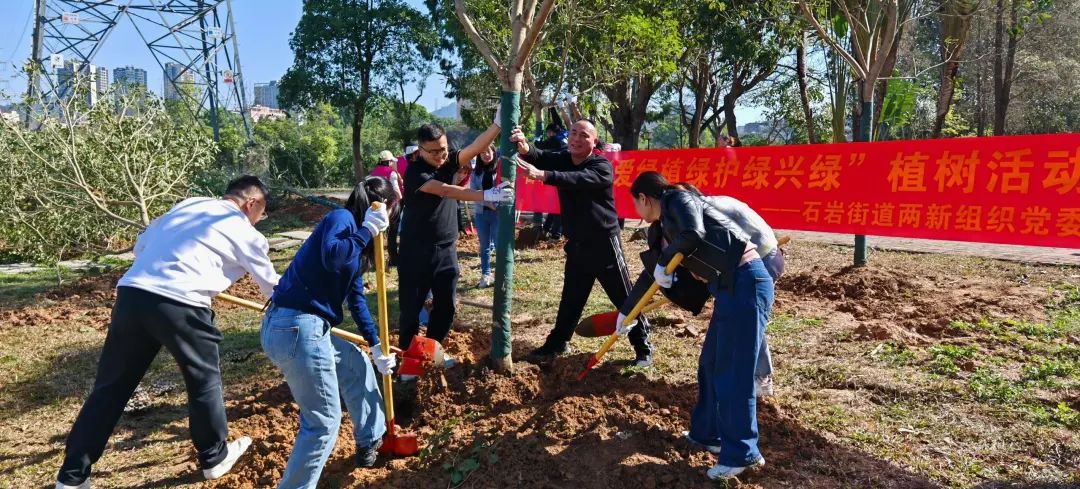 经过一上午的辛勤劳动,20余棵凤凰木、宫粉紫荆等树木深深扎根于石岩的沃土,新植的这片“党建林”交相掩映,迎风挺立,为绿美宝安建设注入源源不断的生命力,未来也必将茁壮成长。