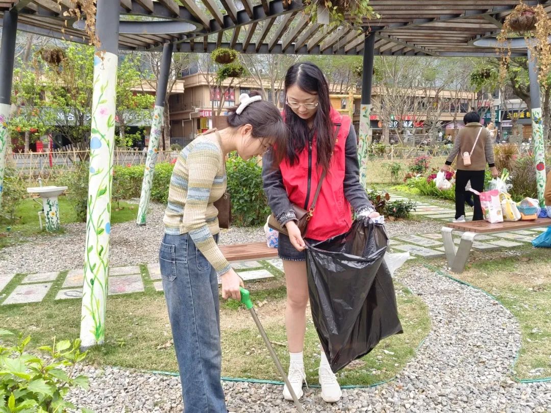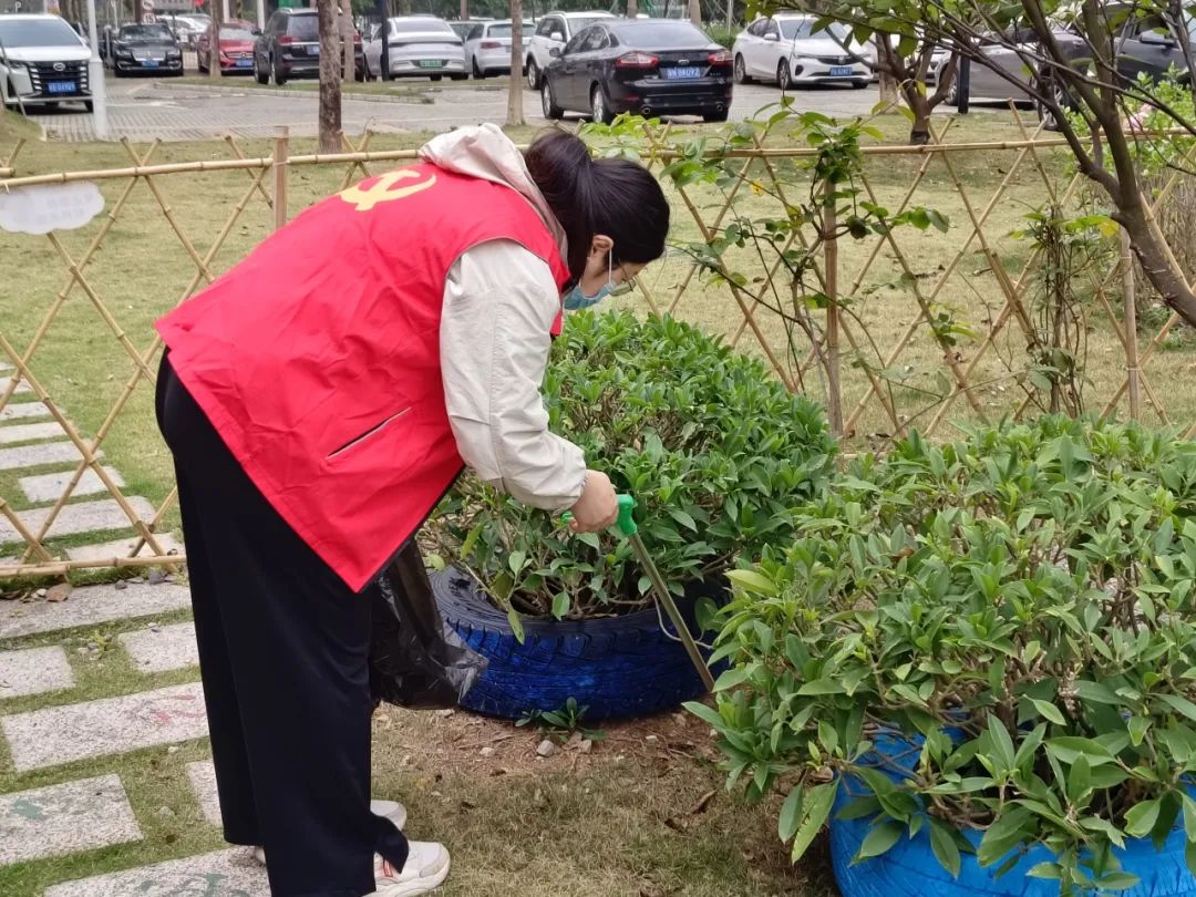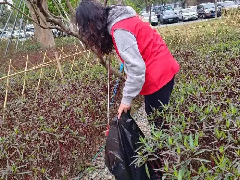 党员志愿者身穿红马甲齐聚七彩园,大家热情饱满、分工明确,有的手握钳子、扫把,认真细致在草坪里捡拾白色垃圾;有的变身“美容师”,修剪杂乱枯萎的树枝,擦拭树苗标识、围栏,为辖区居民营造一个整洁、干净的社区环境。“这才是春天该有的样子嘛,谢谢你们啦”......路过的居民纷纷点赞。