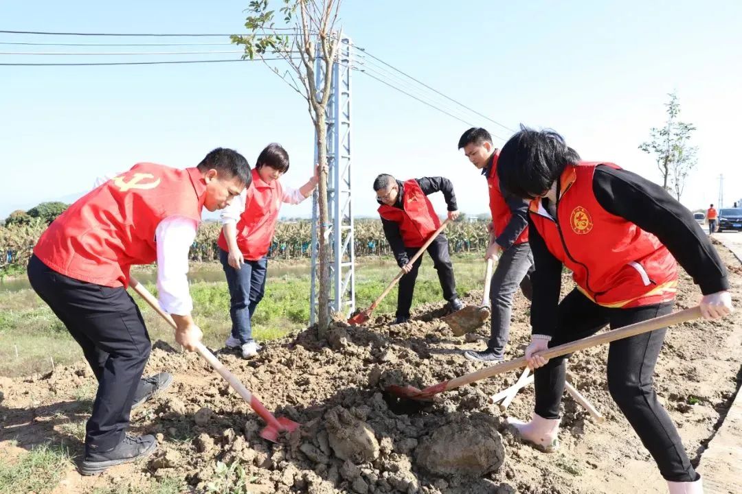 阳春三月,草木萌发,正是植树播绿的好时节。为深入贯彻落实省、市、县关于实施“百千万工程”和推进绿美广东生态建设工作部署,3月12日,欣旺达惠州新能源党支部、惠州锂威党支部积极响应园洲镇政府“绿美”号召,开展公益植树活动,为园洲镇聚绿赋能“百千万”尽一份心意。
