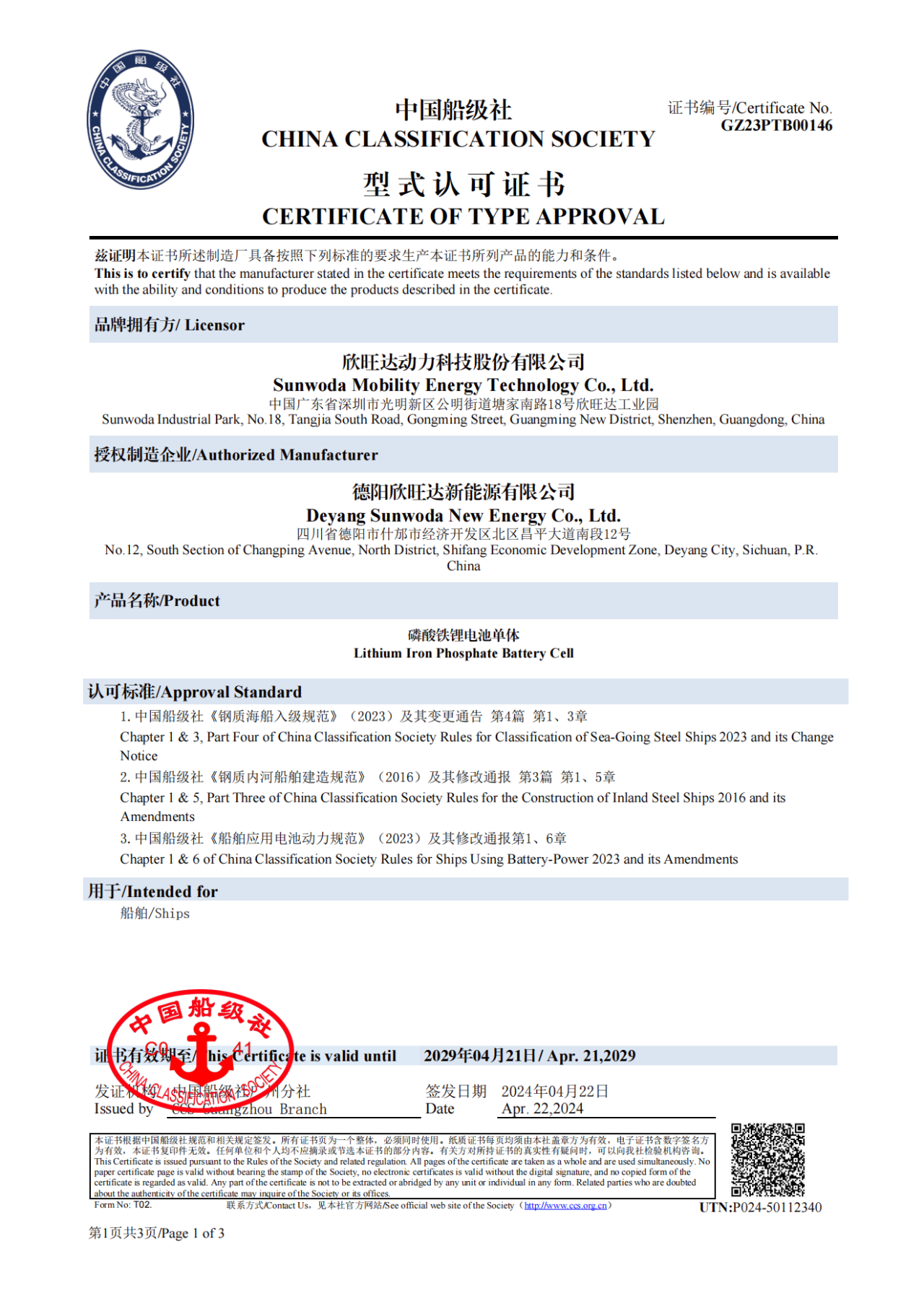 此次凭借其卓越的技术实力和创新精神,成功获得了中国船级社型式认可认证,欣旺达动力将加快为电动船舶的未来发展注入新的动力。据了解,中国船级社型式认可证书是中国船级社(CCS)通过产品的设计评估和制造评估,以确认制造厂具备持续生产符合CCS规范要求或其他接受标准要求产品的能力的评定过程。