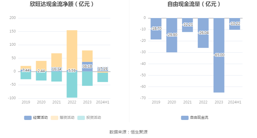进一步统计发现,2024年上半年公司自由现金流为-10.22亿元,上年同期为-68.13亿元。